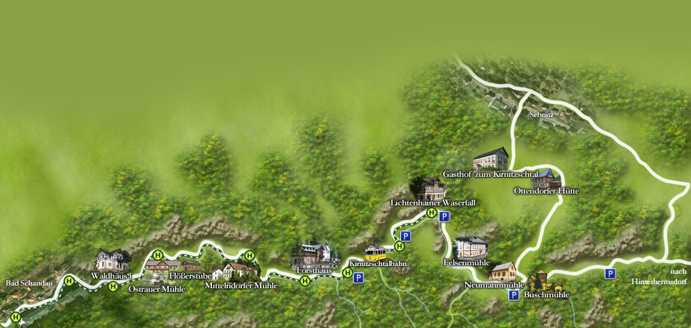 ... zählt zu den interessantesten und schönsten Täler Sachsens. Inmitten des Elbsandsteingebirges zeigt sich hier die Natur von ihrer besten Seite. Schroffe, engende Felswände wechseln mit weiten Wiesengründen und der Wald bietet sich dar in seiner ganzen beruhigenden Schönheit von Nadel- und Laubbäumen.